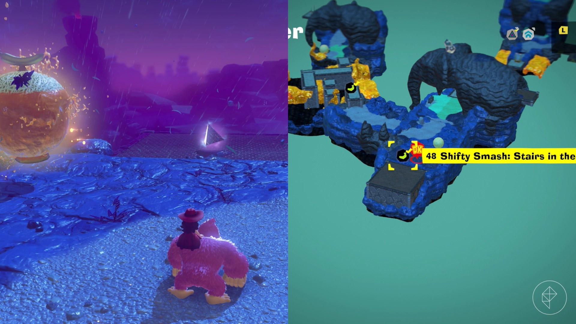 – Defeat Sinister Blusterwing and take on the Revolving-Ring Rumble battle to claim bananas.