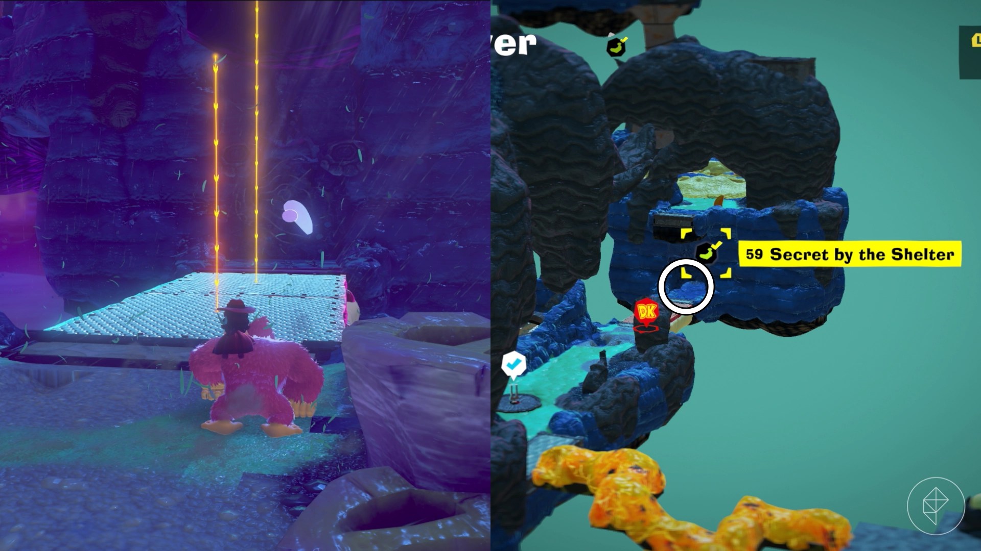 – Right after smashing a big watermelon in the Resort Layer, drop down a hole to find your first set of bananas.