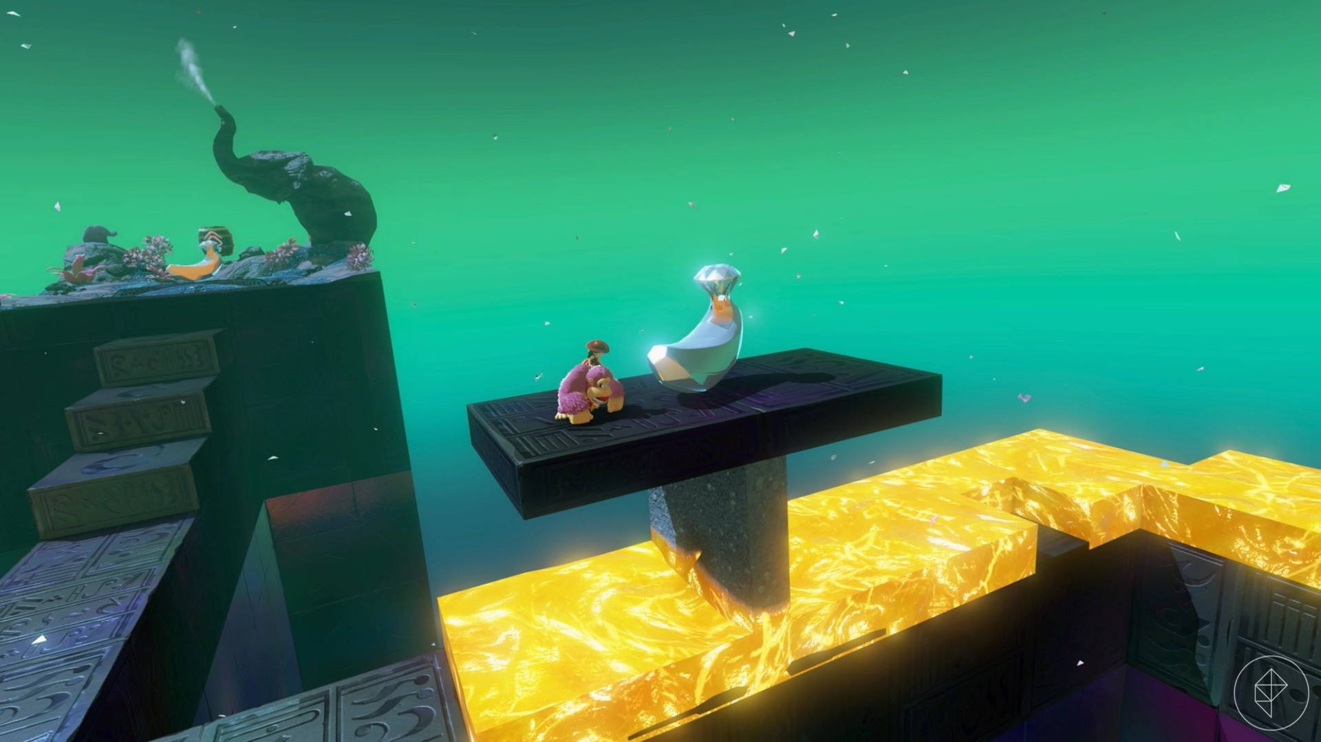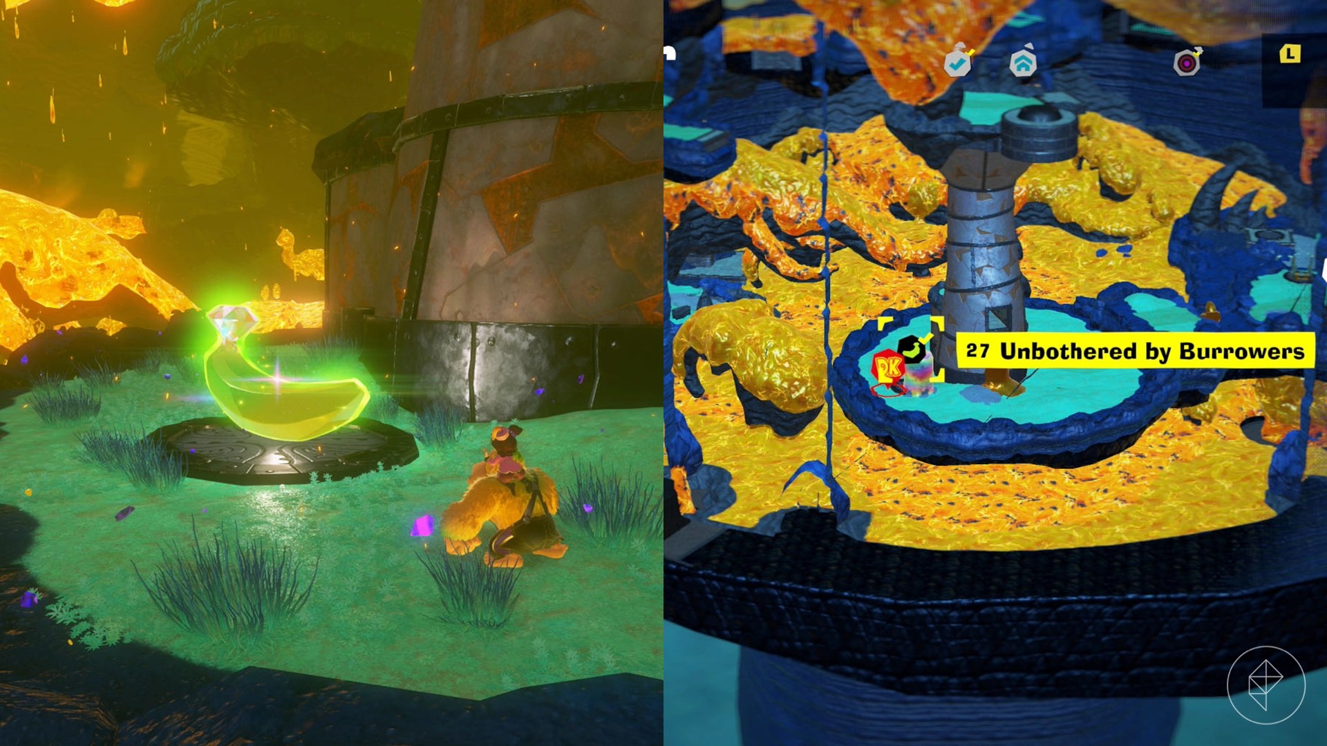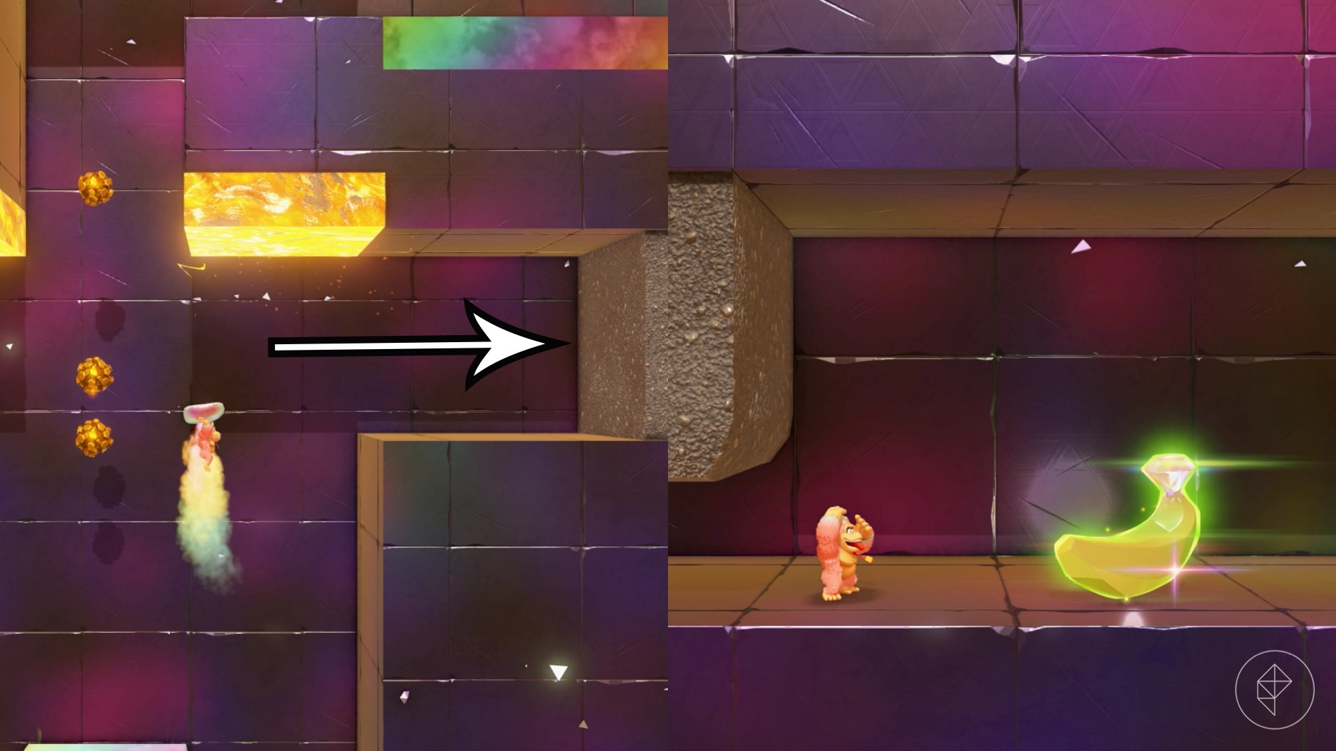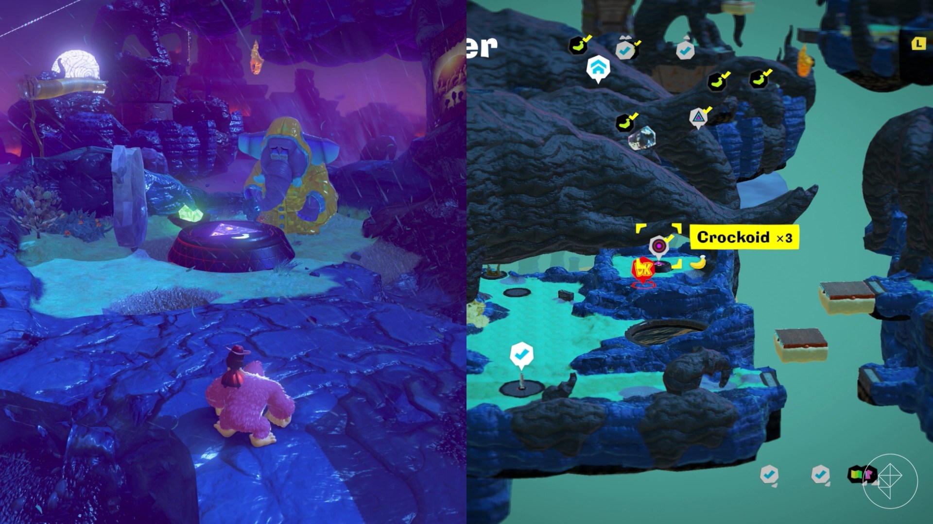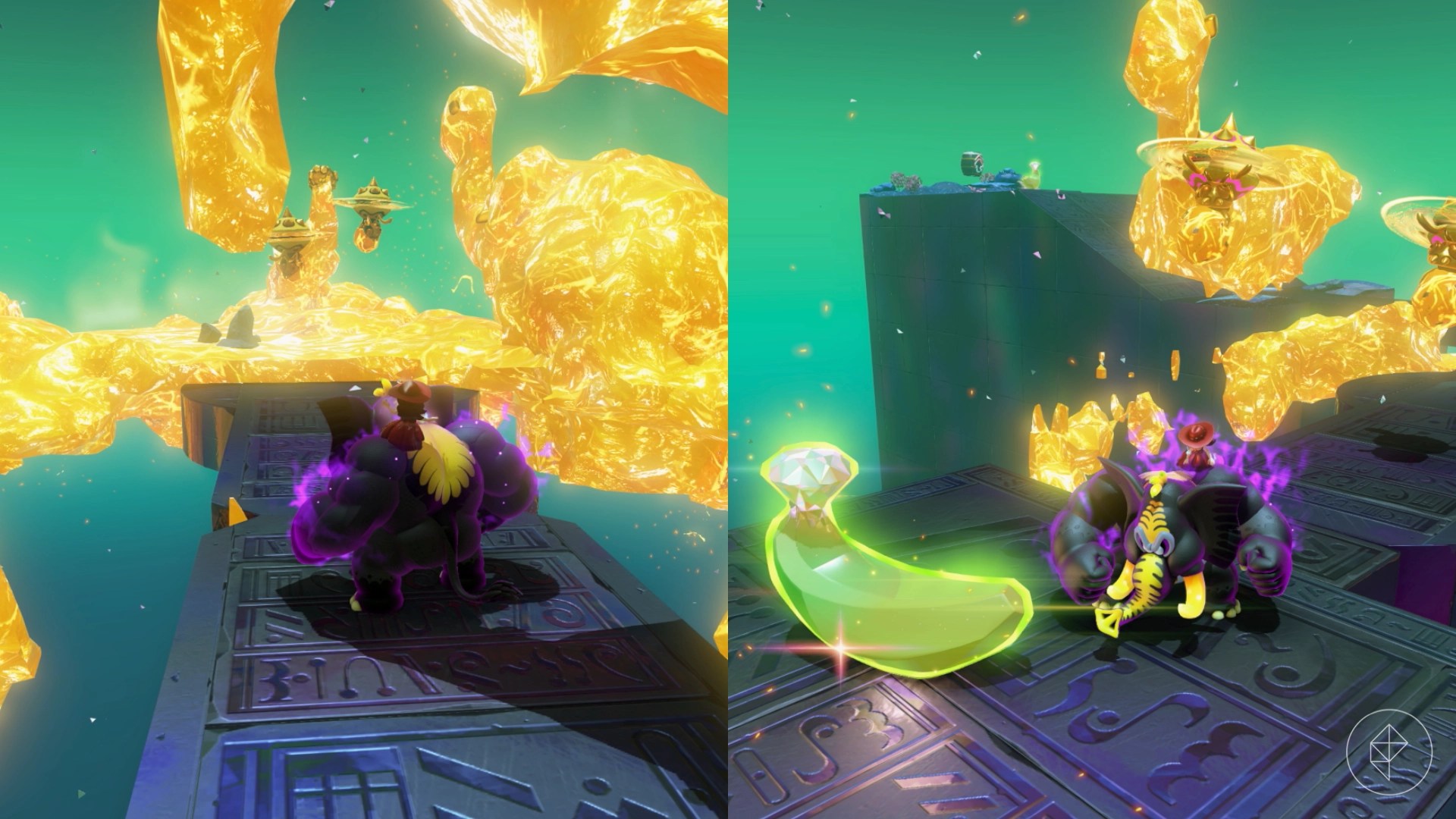You’ll also need to use the Elephant Bananza’s suction to clear lava and create chunks for tricky jumps and to access secret areas.
