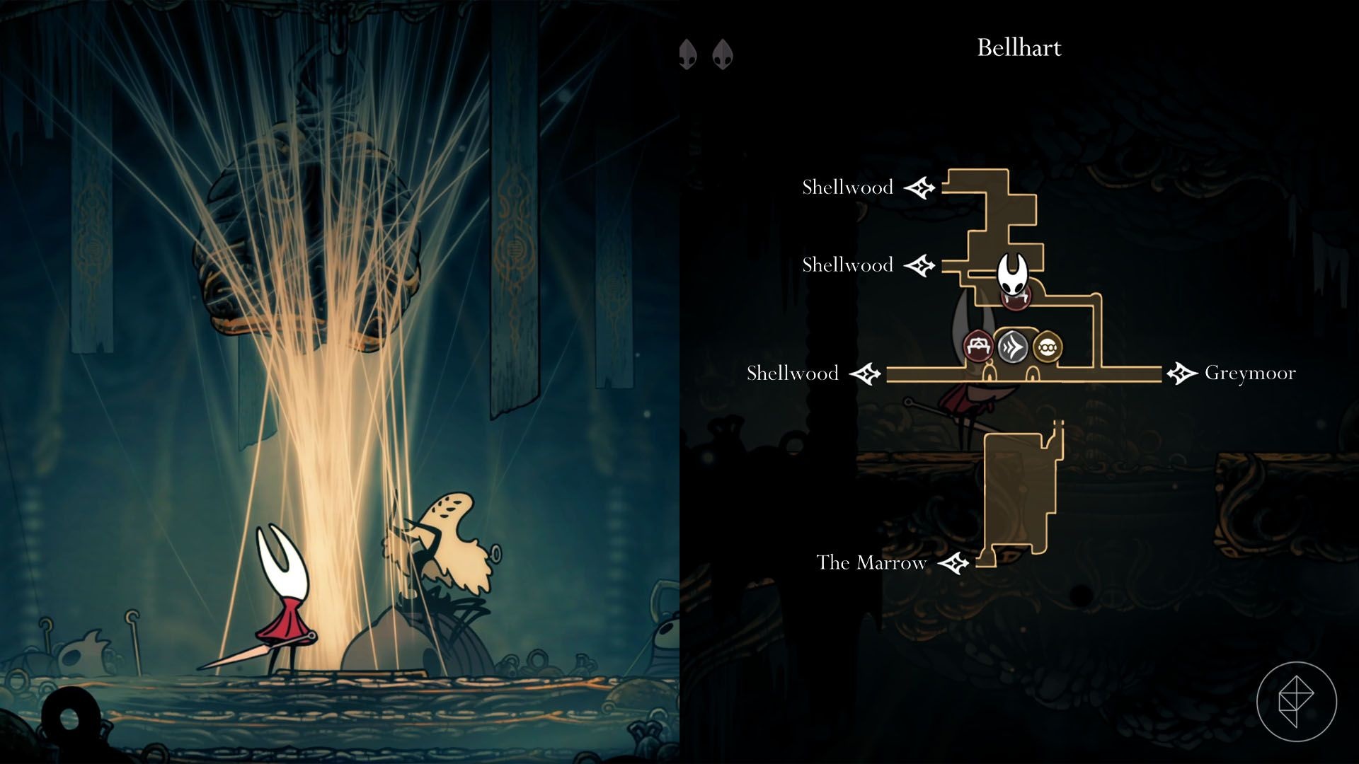 Location: Near the top of Shellwood. Enter via Bellhart and traverse the right half of Shellwood, passing a pogo gauntlet and Sister Splinter. Cling Grip enables wall climbing and wall jumps.