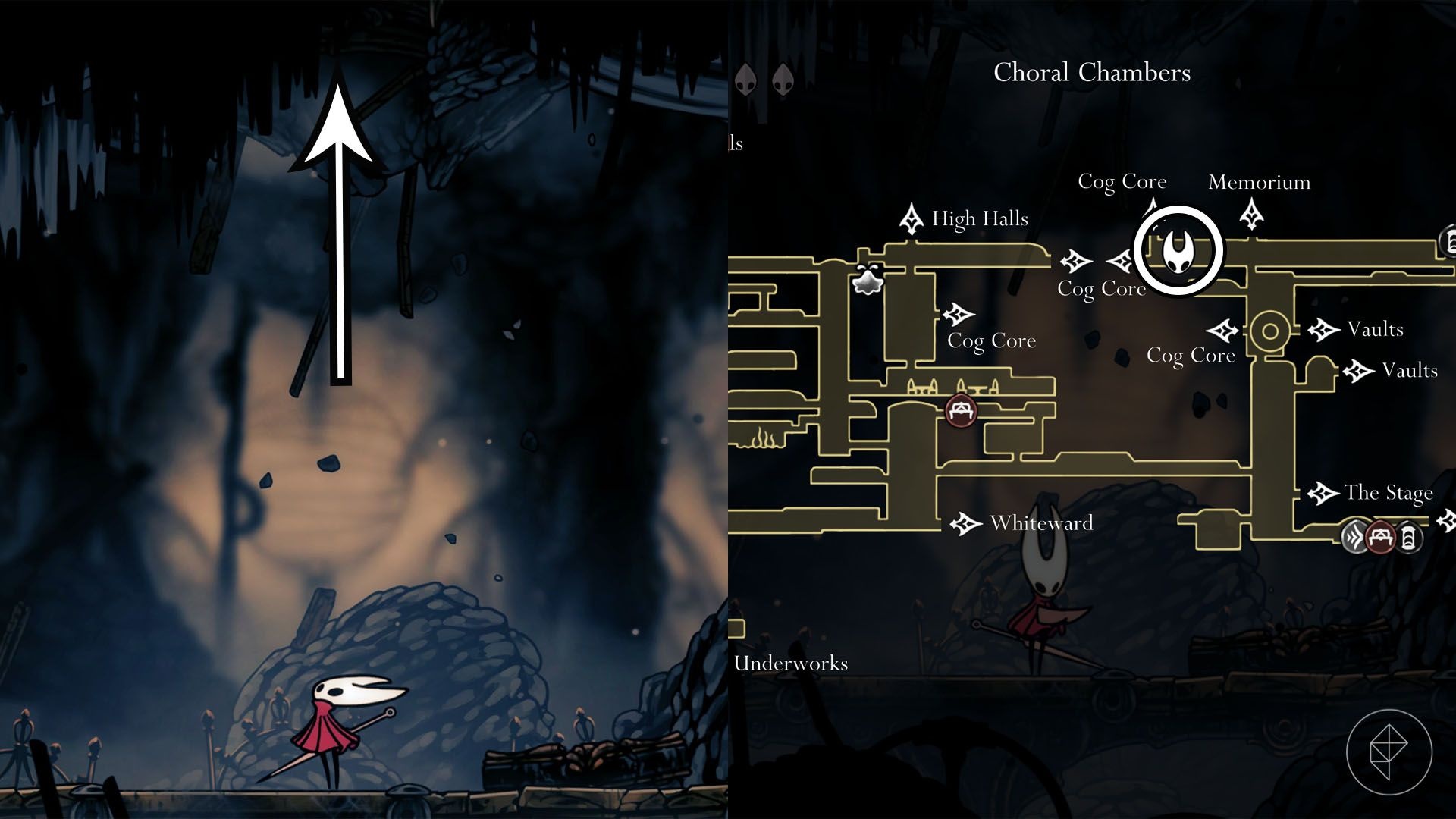 Location: Act 3 reward. After unlocking Silk Soar, return to the Choral Chambers path where you originally landed, use Silk Soar to reach higher holes in ceilings, continue to the stage where you fought Lace and then to Grandmother Silk’s area. Interact with the arm in the rubble to gain Pale Nails.
