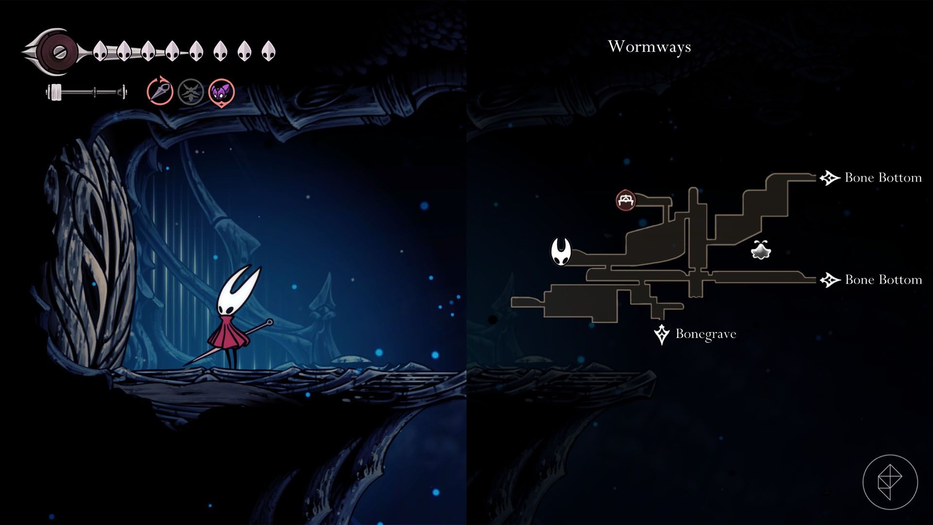 Location: Top of Mosshome in Bone Bottom. From The Marrow, take the northwestern exit and climb to the room with the Weaver statue that grants the ability.