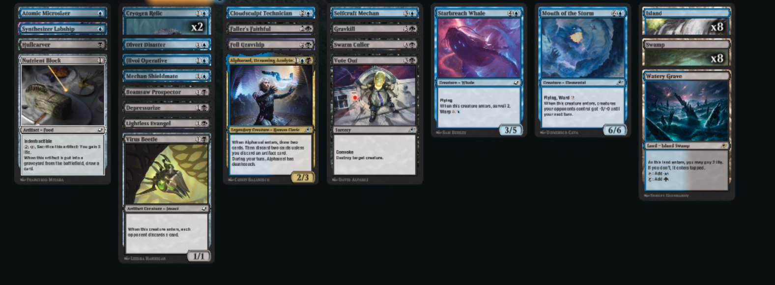 While I didn’t explore every color combo, I got some solid experience with a few decks. For example, my first attempt was a Black-White deck splashing Blue for Singularity Rupture (which I never drew). The deck went 4-3, relying heavily on removal but suffering from flooding and topdeck reliance. Blue stood out as the color that reliably draws cards, alongside Black.