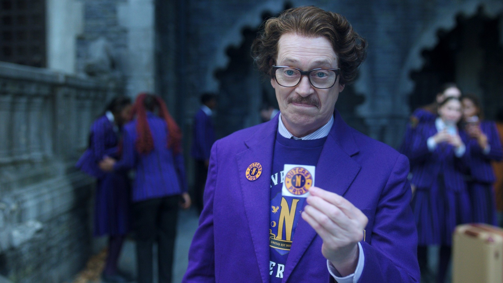 Christopher Lloyd appears as a jarred head who is shown teaching biology and running detention. Wednesday Addams (Jenna Ortega) works on a manuscript on screen, but the series does not clearly show her attending a formal English or creative-writing class.