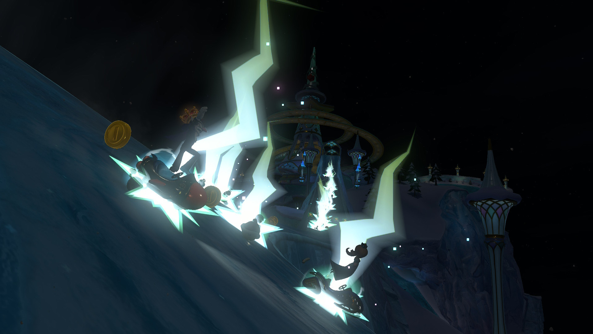Lightning doesn’t just punish the leader; it punishes everyone ahead of the user, no exceptions. And unlike the blue shell, which telegraphs its approach and can be countered with items like the Super Horn or clever rewinds, lightning offers no warning. One moment you’re flying through Rainbow Road, and the next you’re suddenly shrunk and stunned, losing precious momentum mid-trick or while attempting risky shortcuts. In a game where timing and speed are everything, this can be devastating.