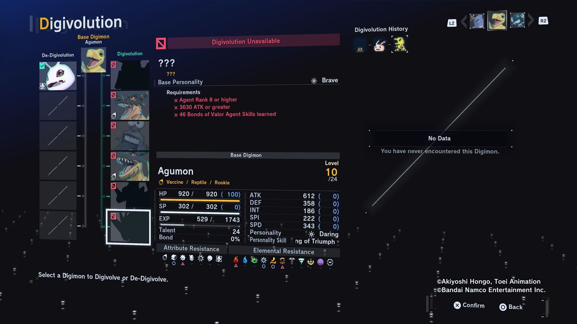 Digivolution depends on several prerequisites. These can include specific attributes (for example, a stat threshold), character personality, or unique items such as DigiEggs. As concrete examples: Veemon can become ExVeemon if it reaches a certain Speed value, while Veemon can become Flamedramon if the player owns the DigiEgg of Courage. Players can trigger digivolution directly from the main menu.